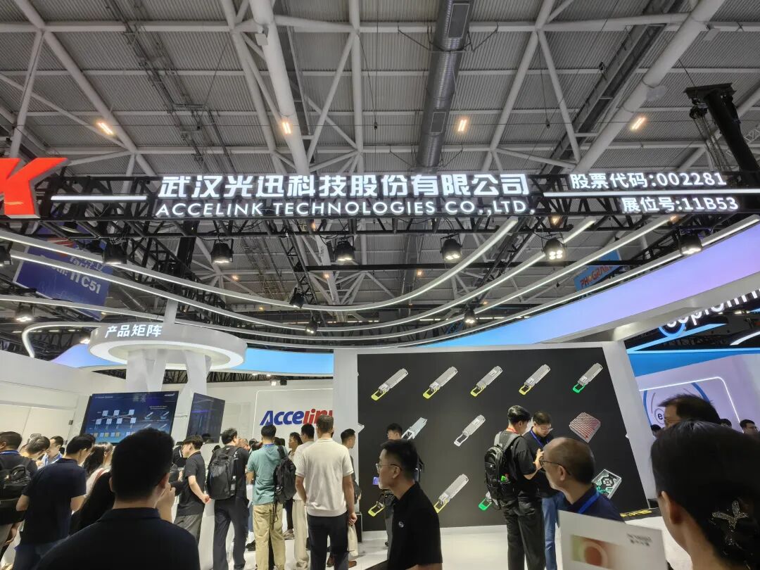 光迅科技展出1.6T、800G、产品生态矩阵及多款通感一体化创新产品,但新品需要预约参观。现场负责人向记者介绍,公司2023年就推出了1.6T光模块,目前出货还是以800G光模块居多。