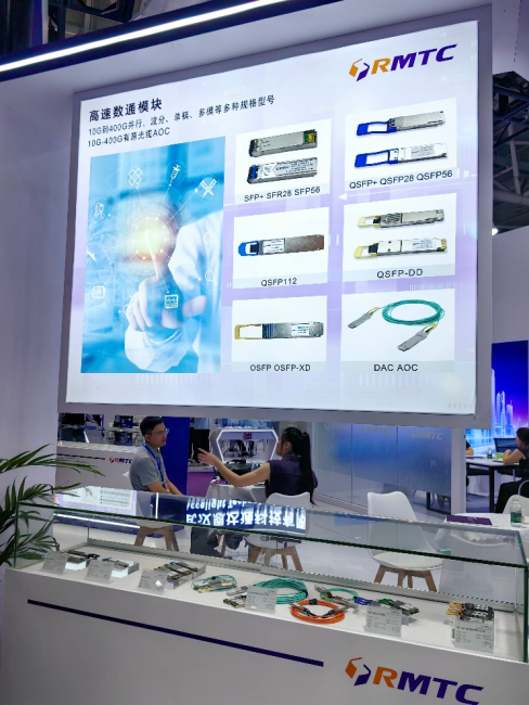 兆驰股份旗下兆驰瑞谷展出400G到800G光模块产品。据介绍,公司出货目前以100G为主,1.6T正在研发中。另外,公司光器件出货量大。