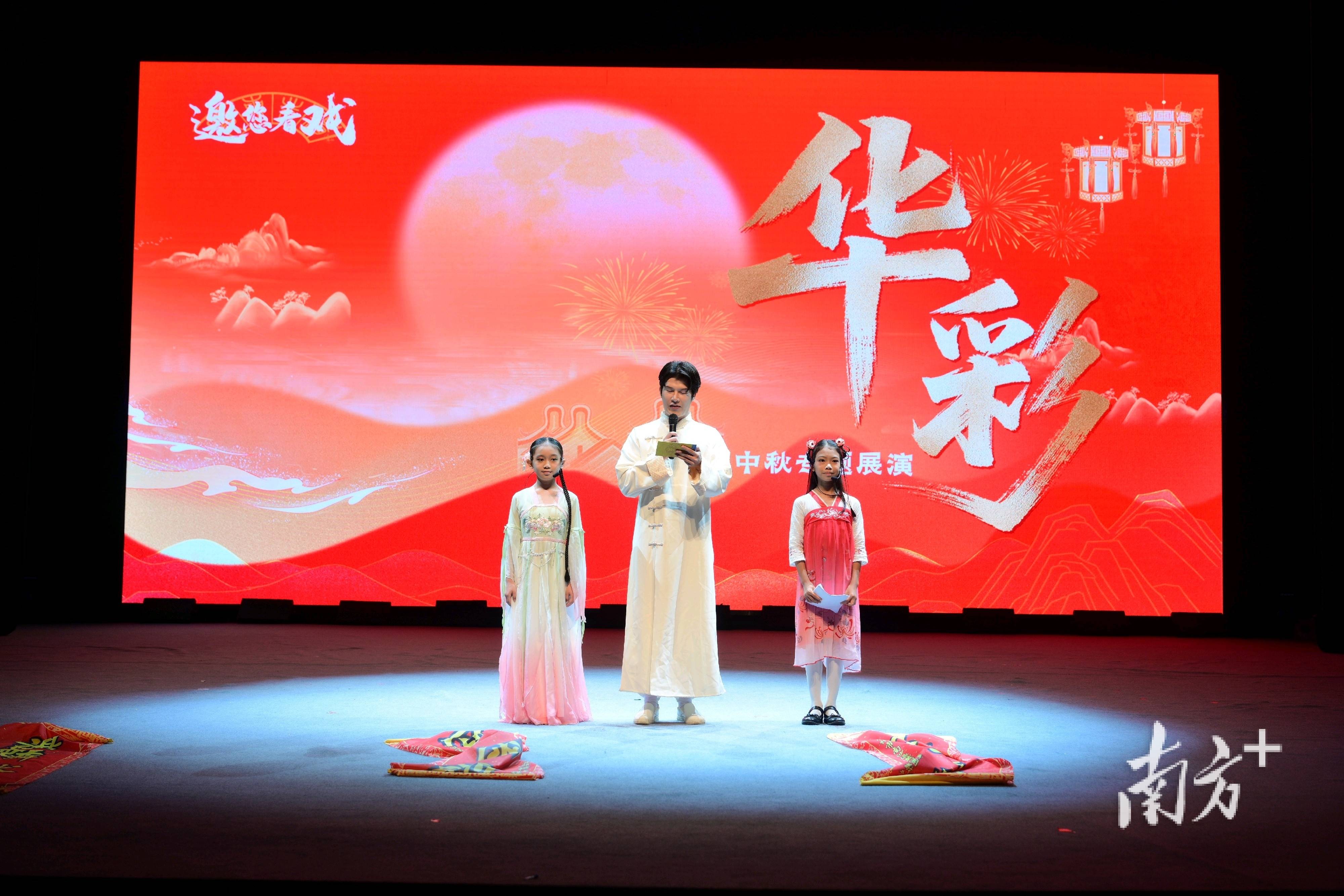 第二篇章“团圆”以声传情,尽显岭南文化魅力。《良宵引》与弦歌《彩云追月》将中秋美学意境娓娓道来,古琴艺术(岭南派)国家级代表性传承人区君虹与市级代表性传承人区宏山父子联袂,一曲《玉树临风》琴剑和鸣、刚柔相济;广东音乐曲艺团深情献唱《游园惊梦》;大象乐队开篇带来新唱客家童谣《月光姊》,以摇滚改编客家山歌《老俩口对山歌》收尾。