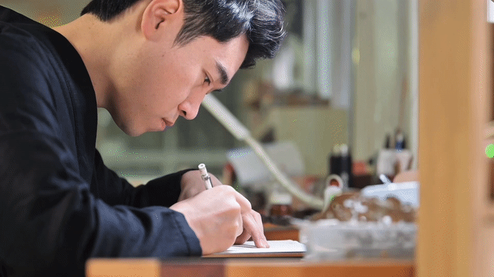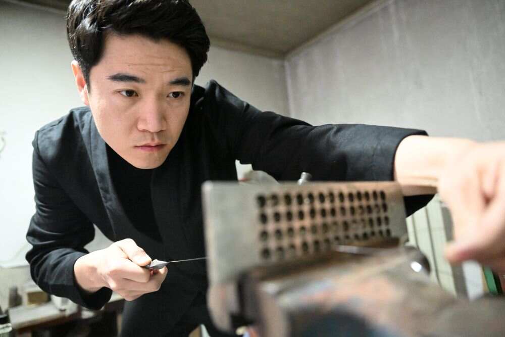 3月19日,马赛在天津市武清区崔黄口镇幌刘庄村的工作室内进行手工拉丝。新华社记者 赵子硕 摄